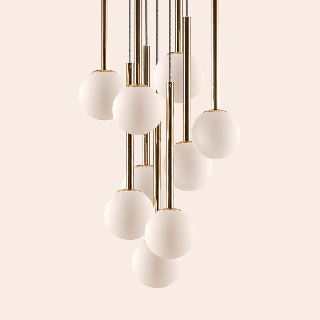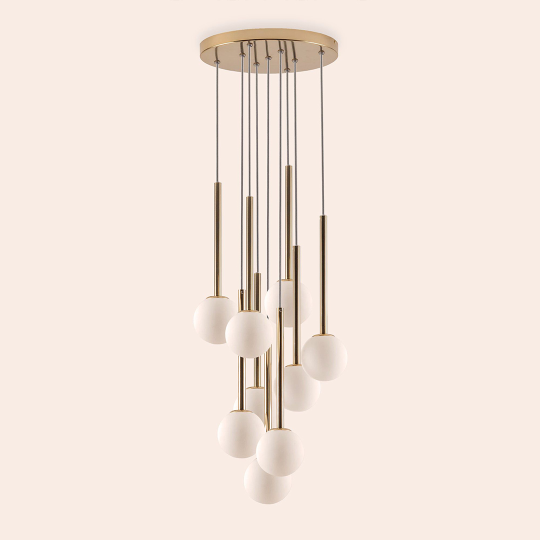 Ürün tamamen metal gövdeden oluşmaktadır, üzerinde cam başlık takılmaktadır. 9 adet g9 duylu ampul girişi vardır